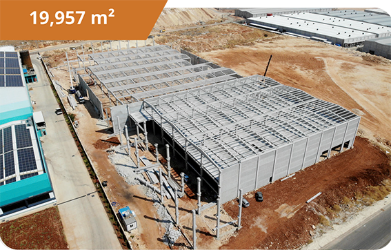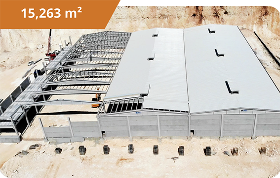 مشروع ضخم يمثل نموذجًا للكفاءة في البناء الصناعي، يوفر مساحات واسعة وعملية للإنتاج والتخزين.